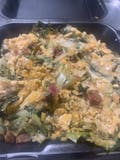 Sautéed escarole topped with seasoned bread crumbs, parmesan, prosciutto, cherry and banana peppers.
